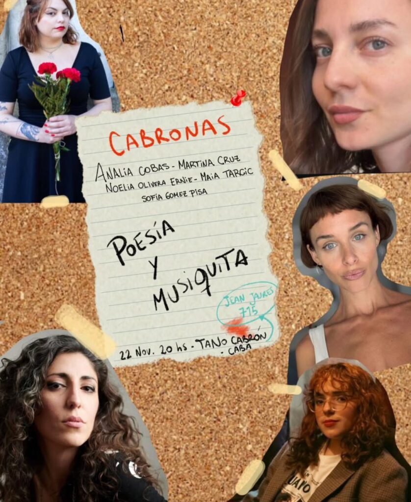 El sábado 22 de noviembre a las 20hs llega «Cabronas», poesía y musiquita, en Tano Cabrón, Jean Jaures 715, en el Abasto.