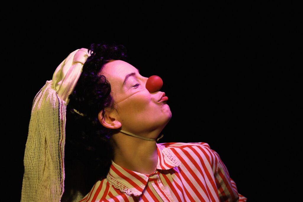 Luis Levy y Lucia Schaab conciben en esta dramaturgia a una payasa que nos comparte su mirada única y desopilante de lo ocurrido en “Bodas de Sangre”, que en el afán de ser precisa y lucir sus dotes, se las ingeniará para representar su propia versión de la tragedia, llevándonos de la risa al llanto, y viceversa.