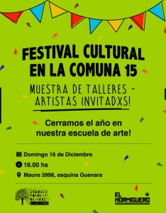 El Hormiguero cierra el año con un festival cultural en la calle, el domingo 16 de diciembre desde las 16hs, en Maure 3998, en el barrio de Chacarita.