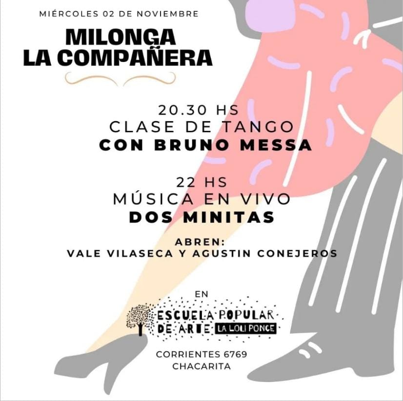 Los miércoles a las 20.30hs llega la milonga “La Compañera” con clase de tango a cargo de Bruno Messa.