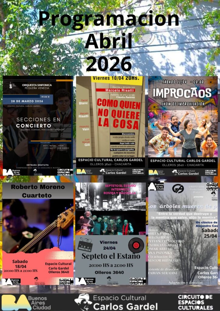 En el Espacio Cultural Carlos Gardel, Olleros 3640, en el barrio de Chacarita, hay distintas propuestas en abril: