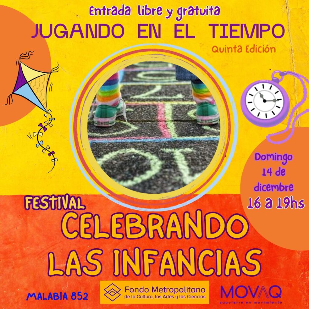 El domingo 14 de diciembre, de 16 a 19.30hs, se desarrollará el Festival Celebrando las Infancias en MOVAQ Aquelarre en Movimiento, Malabia 852, en el barrio de Villa Crespo.