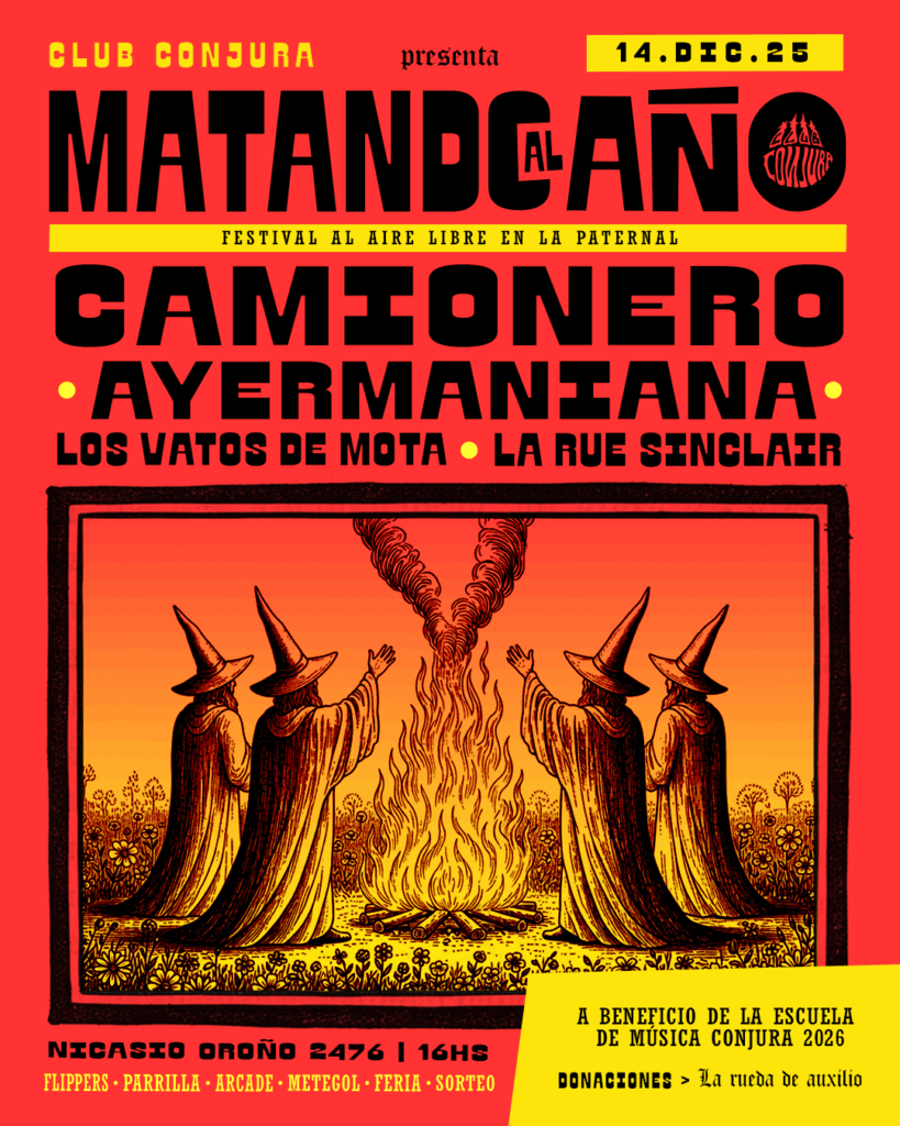 El domingo 14 de diciembre, de 16 a 22hs, el Centro Cultural Club Conjura celebrará la segunda edición del festival Matando al Año en Nicasio Oroño 2476, en el barrio de La Paternal.