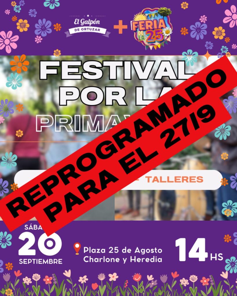 El sábado 27 de septiembre desde las 14hs se realizará el Festival por la Primavera en la plaza 25 de Agosto, Charlone y Heredia, en el barrio de Villa Ortúzar.