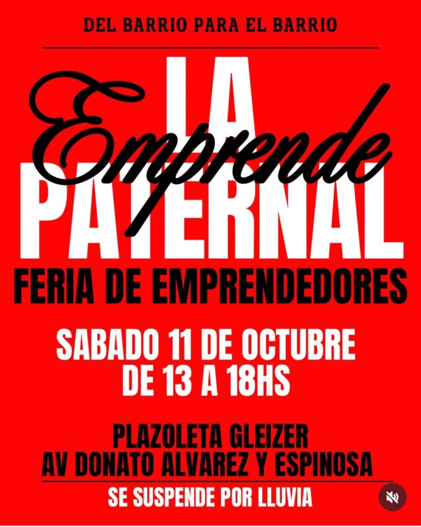 El sábado 11 de octubre, de 13 a 18hs, se realizará la feria La Paternal Emprende en la Plazoleta Raimundo Gleyzer, Av. Donato Álvarez y Espinosa. Esta feria, organizada por vecinas y vecinos, crece en cada edición, ya son 40 los puestos de emprendedoras y emprendedores que participan con distintos productos a buenos precios.