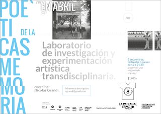 La Paternal Espacio Proyecto, Espinosa 2672, invita a sumarte al Laboratorio de Poéticas de la Memoria coordinado por Nicolás Grandi a partir de abril.