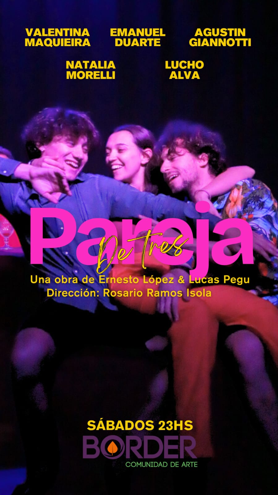Los sábados de noviembre a las 23hs se presenta “Pareja de tres” en Teatro Border, Godoy Cruz 1838, en el barrio de Palermo.