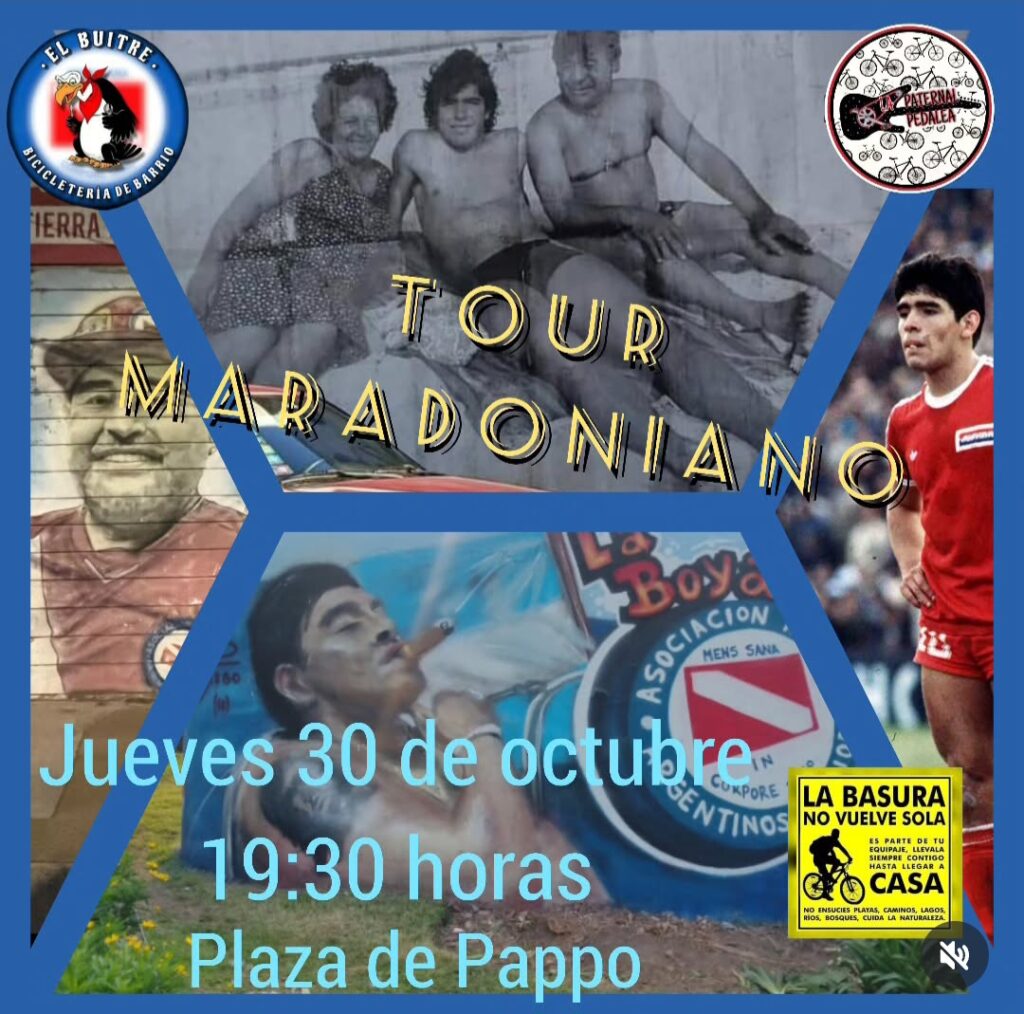 Con motivo del cumpleaños del Diego, La Paternal Pedalea, invita a pasear por algunos murales y lugares emblemáticos en la vida del 10. Será un recorrido de 15km a una velocidad de paseo para que pueda participar toda la familia.
